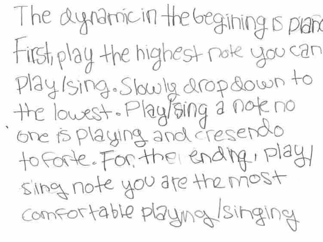 In Musical Journeys, students learned about experimental music and non-traditional notation, such as graphic scores and text scores. They were then invited to create their own pieces using these methods! It is inspiring to see students pushing the boundaries of what they know and understand to be music. Their creativity is endless! Exploring experimental music even allowed students to perform live over Zoom at the same time, performing a piece by composer Pauline Oliveros and another by one of the founders of Fluxus, Benjamin Patterson.