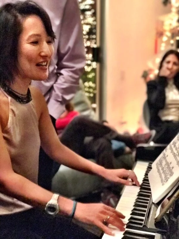 Me ofrecí como asistente de entrenador en violín y viola, así como como acompañante de piano residente en la escuela primaria Grant durante muchos años. También me uní recientemente a la orquesta de la comunidad de SMC, quitándole el polvo a mi violín. Y por estos días, disfruto particularmente siendo anfitriona para mis amigos y familiares, mientras ellos cantan yo los acompaño en el piano. Agradezco a mi estrella de la suerte que tuve la fortuna de aprender a tocar estos instrumentos que me traen tanta alegría.