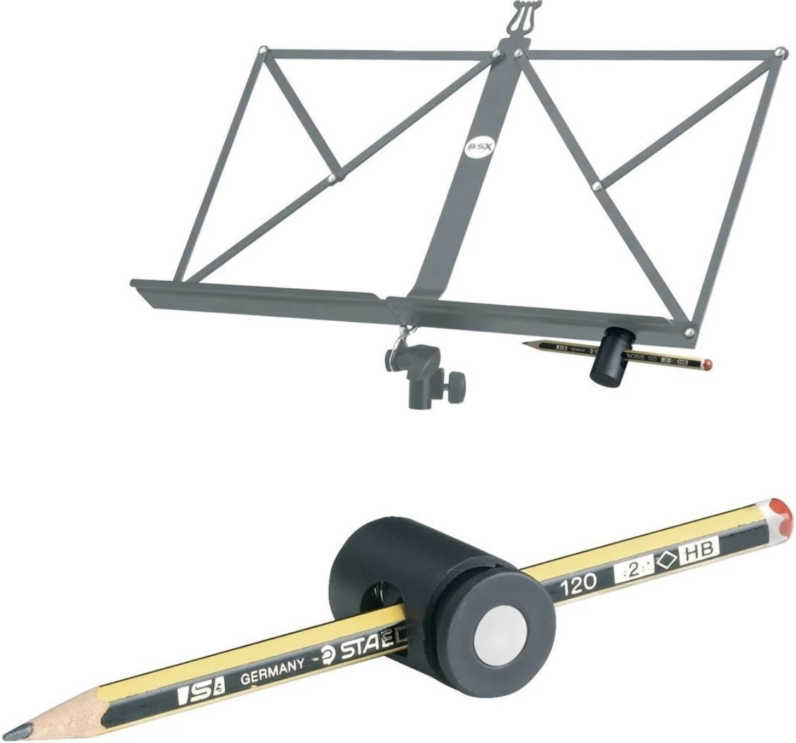 ¿Conoce a alguien que siempre está buscando un lápiz? Es muy importante marcar la música durante el ensayo y mientras se practica. ¡Un portalápices magnético le asegurará que siempre haya uno pegado al atril!